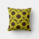 Travesseiro em um padrão de grandes ouros girassóis amarelos, com centros cor-de-chocolate profundos, acentuados com preto