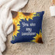 Na moda e elegantes, quic, girassóis botânicos amarelos claros e castanhos no travesseiro marinho de decorador azul com texto, "Você é meu sol."
