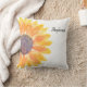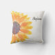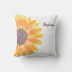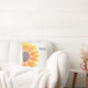 Este travesseiro único é decorado com girassóis de cor amarela.