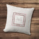 Este travesseiro elegante apresenta uma textura branca falsa de couro e um nome e monograma personalizáveis em um mármore falso e uma estrutura metálica de rosa de ouro.