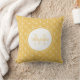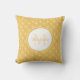 Um travesseiro decorativo quadrado de monograma feminino com um padrão de círculos amarelos mimosa com corações modernos. Personalize adicionando seu nome e monograma inicial ao quadro de círculo bonito. Parte da Coleção de Cores de Verão do Decor do Quarto Mimosa.