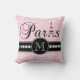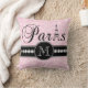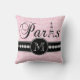 Este travesseiro decorativo preto, branco e cinza-rosado, com cor damasco de colheita em forma de chic, personalizado com o seu primeiro monograma, a palavra "Paris" com a Torre Eiffel e uma linha de diamantes brancos impressos em uma banda preta parecerão incríveis no seu quarto ou sala de estar como um travesseiro de sotaque. Galeria de Monogramas Ofertas © Elke Clarke Designs ©