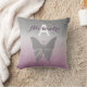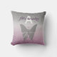 Adorável, elegante, caprichosa, sonhadora travesseiro decorativo de berçário de uma menina, com borboleta roxa, rosa e prateada brilhando.