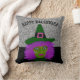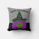 Travesseiro decorativo brilhante de bruxa negra de prata preta de Halloween Adicione alguns s à decoração em qualquer sala com este legal design de blusa! A frente do travesseiro é projetada com brilho preto e falso prateado cintilante com um rosto de bruxa bonito no centro e Feliz Halloween. O dorso é de prata sólida e pode ser usado para ocasiões especiais ou decoração diária. Personalize com seu próprio texto, se desejar, simplesmente seguindo o prompt do modelo Zazzle.