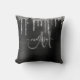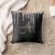 Adicione um toque de brilho e brilho à decoração da sua casa com este travesseiro decorativo personalizado elegante. Este modelo de design chic apresenta um grande monograma de script de cinza e seu nome em branco para personalizar sobre um fundo de textura metálica escovada preta, acentuado por uma borda de falso brilho prateado. Um presente feminino único para aniversário, feriados e qualquer ocasião especial. Projetado apenas para você por Camisetas Extremas!