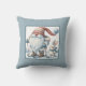 Um gnomo barbudo de aquarela branca com um chapéu de inverno que esquia com um belo coelho em flocos de neve.