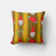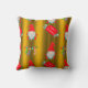 Esta almofada de ouro giro de Natal tem um padrão de pequenos elfos de Natal (ou auxiliares de Papais noeis, ou gnomos de jardim) num fundo de ouro festivo. Os elfos estão todos vestindo chapéus vermelhos pontiagudos e têm longas cinzas. À sua volta estão meias listradas coloridas e sinais vermelhos alegres desejando um Feliz Natal. Este belo travesseiro de Natal de ouro fará uma declaração divertida e festiva para os feriados deste ano.