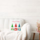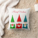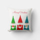 Gnomos de Natal bonitos modernos vestidos de vermelho, azul e verde em Travesseiro branco. Texto só na frente! Feliz Natal!