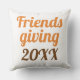 Esta é uma travesseiro decorativo que você pode usar durante Ação de Graças ou Ação de Amizade. Tem uma mensagem engraçada que diz "Gobble 'até você balançar" em cores que te lembram do outono. Há também uma foto de um peru nele. Na parte de trás do travesseiro, diz "Ação de Amizade" e você pode adicionar o ano para torná-lo especial. É uma maneira excelente de se divertir com suas decorações de férias e fazer seus convidados sorrirem.