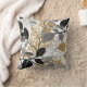 An intricate arrangement of leaves and vines, featuring tones of black, gold, and grey couch cushion.