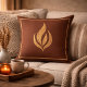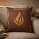 Radiant hearth theme in warm brown and brushed gold, featuring a centered painterly flame framed by a slim ivory border. This neutral accent suits layered sofas, window benches, or reading chairs, pairing easily with taupe throws and cream textiles for grounded, elevated home decor.