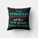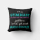 Travesseiro decorativo da ginástica do DIVERTIMENTO com o texto, "eu sou um GYMNAST… apenas como meninas "normais" exceto" um ©gollygirls.com MUITO MAIS FRESCO