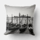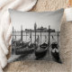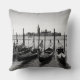 Almofada de travesseiro decorativo fotográfico com uma fileira de gondolas tradicionais na água com Veneza ao fundo na Itália a preto e branco.