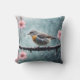 Pássaro em um galho com flores cor-de-rosa e gotas de chuva na janela.