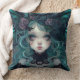 Gótica Bat Girl em Teal Travesseiro decorativo. © Desejos do Coração Escuro. Uma Gótica Bat Girl in Teal está neste travesseiro decorativo.