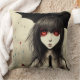 Um travesseiro decorativo de aparência escura, com gráficos de uma gótico preta na chuva. Personalize para adicionar seu próprio texto.