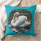 Um cisne gracioso flutua suavemente numa lagoa tranquila, com as suas penas brancas lindamente refletidas na água. O fundo sereno de verde exuberante adiciona um ambiente pacífico à cena.