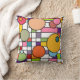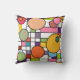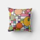 Este travesseiro decorativo tem um design moderno do século médio de uma grade com alguns retângulos coloridos e círculos em cima em cores retrorreflectoras.
