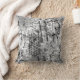 Este travesseiro decorativo apresenta um abstrato eclético que inclui círculos de listras-zebra. As cores variam de cinza (ou cinza) a carvão vegetal a preto.