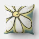 Grande flor de margarida branca e amarela em travesseiro decorativo azul da minha Coleção "Louca para Travesseiro decorativo Primavera". Visite minha loja para outros produtos de decoração caseira Emporium de Jenn.
