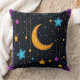Uma cena do céu noturno, apresentando uma grande lua crescente e inúmeras estrelas. A lua e as estrelas são retratadas como objetos luminosos e emissores de luz com tons de ouro, laranja, azul, azul-esverdeado e roxo. Elas estão suspensas por cordões de pequenas contas ou correntes douradas contra um fundo preto escuro salpicado com pequenos pontos cintilantes representando estrelas. As estrelas são de vários tamanhos, variando ligeiramente na saturação de cor e brilho. A composição é simétrica, com a lua e um aglomerado de estrelas posicionados aproximadamente no centro da imagem. A perspectiva é direta, olhando para o display diretamente. A paleta de cores é vibrante, com contrastes ousados entre as luzes brilhantes e o fundo escuro. O estilo é decorativo e comemorativo, evocando uma atmosfera festiva. Uma borda decorativa floral/ornamental circunda a imagem. O