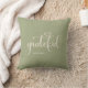Um travesseiro decorativo simples moderno em verde sábio com a palavra "Grateful", personalize com seu nome. Este travesseiro é a adição perfeita às suas decorações caseiras no outono, ou faz um belo presente.