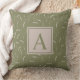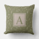 Travesseiro decorativo personalizado com gramíneas selvagens desenhadas à mão sobre o padrão das campos de Verão e monograma personalizado em verde sage