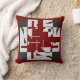 Featured are small shapes in various shades of gray, with black corner squares on a rich dark red background. The overall design is suggestive of a square labyrinth and creates contemporary, and artistic look, at the same time hinting at more traditional calico-like floral design. A minimalist pattern, the design creates a chic, artistic, and vibrant, as well as warm and relaxed vibe for living area, bedroom, workspace, terrace, or patio decor, offering a feeling of warmth and tranquility. There is much decorating potential in this accent piece, which fits into numerous styles (innovative to traditional), from retro/vintage to farmhouse to modern ranch style to rustic hacienda to urban loft and high rise.