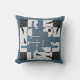 Featured are small shapes in various shades of gray, with black corner squares on a slate blue background. The overall design is suggestive of a square labyrinth and creates contemporary, and artistic look, at the same time hinting at more traditional calico-like floral design. A minimalist pattern, the design creates a chic, artistic, and vibrant, as well as warm and relaxed vibe for living area, bedroom, workspace, terrace, or patio decor, offering a feeling of warmth and tranquility. There is much decorating potential in this accent piece, which fits into numerous styles (innovative to traditional), from retro/vintage to farmhouse to modern ranch style to rustic hacienda to urban loft and high rise.