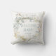 Esta grinalda botânica da aguarela bonita é cheio dos wildflowers e dos ramos, e mesmo algumas borboletas fazem sua aparência. O texto extravagante diz "o bebê bem-vindo" e tem a sala para que você adicione o nome do seu bebê. A parte traseira do travesseiro é um azul macio da cerceta com o mesmo design botânico.