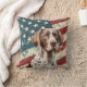 Um belo retrato de aquarela de um Cachorro de Ponta Curto Alemão é posicionado contra um fundo gigante da bandeira dos EUA. Ambos os lados do travesseiro têm a mesma imagem.