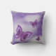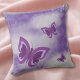 Este travesseiro bonito apresenta três imagens de borboletas roxas, lavandas e coloração violeta contra um fundo que combina tons nuvens. O outro lado do travesseiro tem o fundo, mas não as borboletas. Faz um travesseiro interessante e reversível, e é especialmente adequado para o quarto de uma menina.