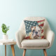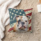 Um belo retrato de aquarela de um belo Bulldog é colocado contra um fundo de grunge da bandeira dos EUA. Ambos os lados do travesseiro têm a mesma imagem.