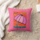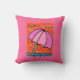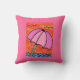Este travesseiro do guarda-chuva de praia descreve um dia preguiçoso sereno na costa. Dois pássaros destacados em matiz verdes pairam sobre um guarda-chuva de praia cor-de-rosa com as ondas azuis brilhantes cintilantes na distância.