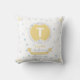 travesseiro personalizado para bebês com monograma e detalhes de natalidade em azul macio e amarelo em fundo de estrelas, um presente especial de manutenção.