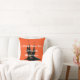 Este travesseiro de Halloween é mostrado em laranja com a frase A Witch Mora Aqui com seus pequenos Monstros em uma casa assombrada. Personalize este item ou comprar como está.