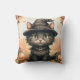 Pumpkins rodeia um gatinho preto giro num fundo que é o tema do Dia das Bruxas.