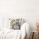 Uma colagem gótica e romântica escura de uma bola de mascarada Halloween, com imagens vintage de um esqueleto, uma placa de moda francesa do século 18, velas de vela, um gato petrificado. No verso da almofada está um candelabro, tanto a frente como o verso estão sobre o fundo de um testemunho escrito à mão dos julgamentos das Bruxas de Salem.