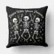 Três esqueletos dançarinos com tipografia de dança com seus demônios.