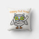Travesseiro decorativo de Halloween bonito com design de múmia coruja. Travesseiro diz "Happy Owl-Ween", com coruja de ambos os lados. Você pode mudar a frase ou personalizar de ambos os lados com outra frase, seu nome ou o que quiser!