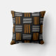 Este travesseiro decorativo tem um design moderno do século médio que se parece com uma tecelagem com linhas laranja e branca num campo de preto.