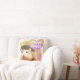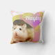 Travesseiro de hamster fofo e divertido. Projetado com um adorável hamster marrom Robo. Ela tem um nariz rosa giro e sussurros brancos longos. O travesseiro tem uma mensagem que diz "Huggy Buggy" e você pode personalizar com seu próprio nome no verso. Os designs geométricos colorido pastel dão ao travesseiro um aspecto brilhante extra.