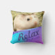 Travesseiro de hamster fofo e divertido. Ilustrado com um adorável hamster robo marrom e branco. Ela tem um nariz rosa giro e sussurros brancos longos. O travesseiro tem uma mensagem para "Relaxe e Seja Feliz". Os designs geométricos colorido amarelo e rosa dão ao travesseiro um aspecto brilhante extra.