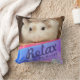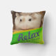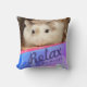 Travesseiro de hamster fofo e divertido. Ilustrado com um adorável hamster robo marrom e branco. Ela tem um nariz rosa giro e sussurros brancos longos. O travesseiro tem uma mensagem para "Relaxe e Seja Feliz". Os designs geométricos coloridos dão ao travesseiro um aspecto brilhante extra.