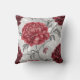 Hand-Drawn Peony Throw Pillow Cover – Elegant Crimson & Burgundy Floral Design on White – Decorative Pillowcase 18x18
