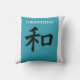 Beautiful turquoise blue Throw cushions featuring the Chinese symbol for 'harmony'.