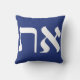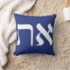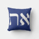 Tipografia hebraica moderna Aleph Tav. Inscrição branca num fundo azul-céu. Individualmente, as letras representam: 'Aleph', o 'autor' da vida e 'Tau', a 'Marca' do Pacto. (Como: 'X marca o ponto', 'Eu estava aqui' ou 'isto é meu'). Hebraico lê da direita para a esquerda. Quando as letras Aleph-Tav são colocadas juntas, elas fazem a palavra 'AT' geralmente traduzida 'eth' significando 'Oath'. A palavra ’AT’ encontra-se mais de 7300 vezes na Bíblia do Rei James. Sua primeira menção é no Gênesis 1:1, que lê "No começo Elohim criou NO Céu e na Terra." Nosso Criador colocou Sua 'Marca' em tudo que pertence a Ele. Na concordância de Strong, a palavra é referida como H853 אֵ 'êth/ayth Aparentemente contraído de H226 no sentido demonstrativo da entidade; propriamente dito (mas geralmente utilizado para apontar mais claramente o objeto de um verbo ou preposição, mesmo ou nomeadamente): - (Como tal não representado em inglês). Ocorrências KJV totais: 7302. Hebraico Aleph Tav Travesseiro decorativo Branco Azul Escuro.