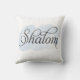 Olá! no hebraico - Shalom em uma pia batismal cursive com um swoosh azul da aguarela embaixo.