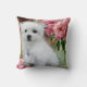 Este travesseiro bonito caracteriza Hermes, um cão de filhote de cachorro maltês pequeno doce. Há duas imagens neste produto, uma na parte dianteira e diferente na parte traseira.