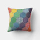 Um elegante padrão digital de hexágono colado no arco-íris em um travesseiro.